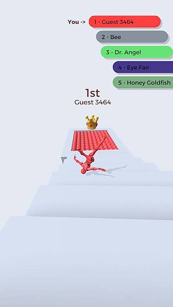 在游戏中,玩家需要进行翻滚以争取胜利。楼梯的台阶形状各异,且随着难度增加,台阶数量也会增多。游戏目标是在下楼梯时比其他对手更快到达底部,过程中会遇到障碍物。因此,玩家需要运用技巧来提高滚动速度。