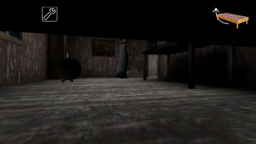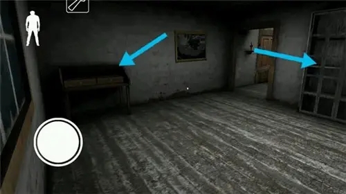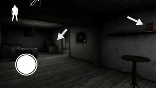 下楼梯后,左侧地板上有一根黑线,踩上去会触发铃铛声,需小心。楼梯旁的柜子可以藏身,柜子对面有一扇门,里面可能有物品刷新。柜子旁边还有一扇通往地下室的门(由于光线较暗,不太容易被发现),而奶奶的出生地就是地下室,所以新手玩家一开始不要急着往地下室跑。最后提醒一下,以后不再重复提示。墙上的画、照片、小物件等都可能被碰掉,因此走路时尽量避免贴着墙走。