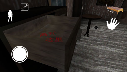 这是出生房,靠近床时点击右上角可以躲进床下,衣柜里也可以躲进去,床头柜左边的抽屉里有三行红字:Leave this house(离开这个房子),右边的抽屉里一般不会刷东西。房间里只有花瓶和摆花瓶的桌子能被推倒,花瓶可以拿起扔在地上。在Day2(第二天)时出生房的门会被锁,所以需要扔花瓶或推倒桌子吸引奶奶过来,然后躲进床下或衣柜等奶奶离开。
