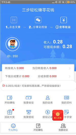- 文章转发分享单价超给力,高达0.35元!不仅更新速度快,只要注册下载,就能收获金额不等的红包哦。