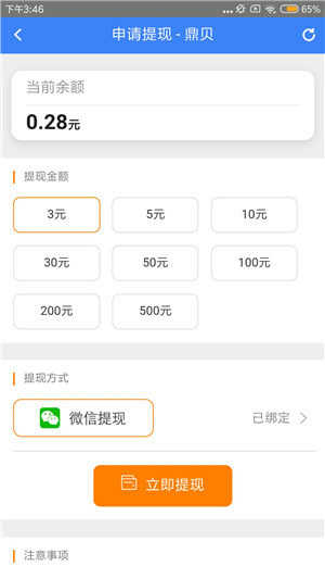 只需一键授权微信,就能进行提现操作。首次微信提现金额满3元即可,后续提现则需5元起,提现金额当天到账。